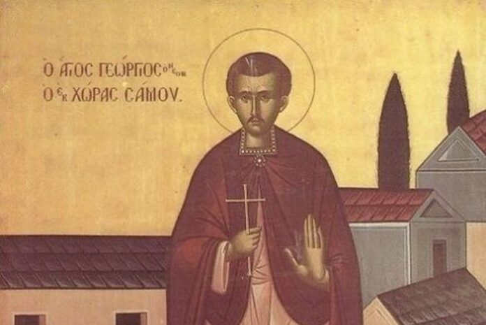 Ο Άγιος Νεομάρτυς Γεώργιος εγεννήθηκε από Σάμιο πατέρα στη Νέα Έφεσο το 1756 μ.Χ. Ακολούθησε τον έγγαμο βίο και απέκτησε τέκνα. Όμως, κατά τον Ιούλιο του 1798 μ.Χ., ευρισκόμενος σε κατάσταση μέθης, παρασύρθηκε στον Ισλαμισμό και αρνήθηκε τον Χριστό. Επειδή για την πράξη του αυτή ένιωσε ντροπή, αφού απεκήρυξε τον Ισλαμισμό, έφυγε από την Έφεσο και ήλθε στη Σάμο.