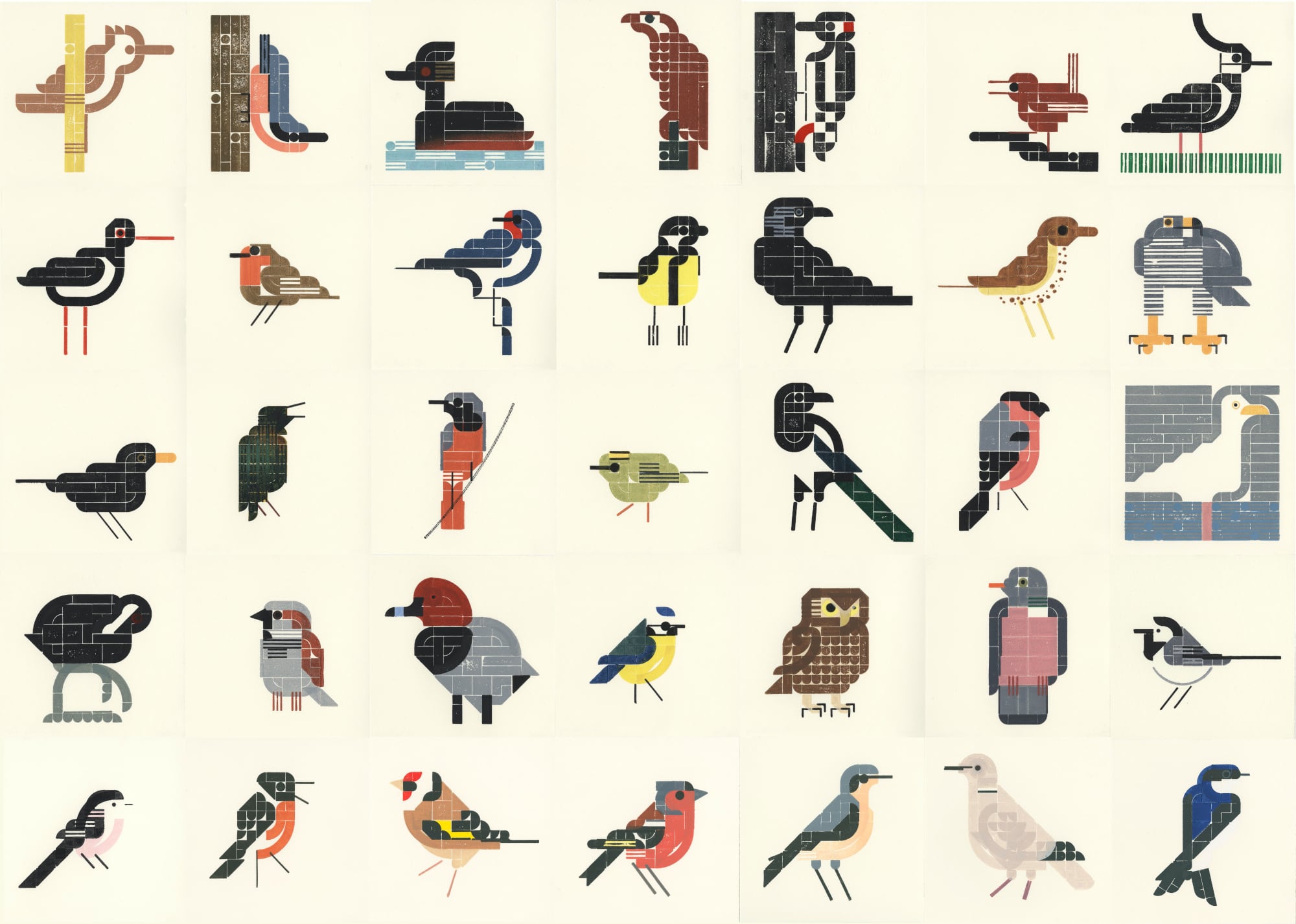 Στο πλαίσιο του «50 Birds», ο Scholten σχηματίζει στο στούντιό του στην πόλη Hilversum δεκάδες πετούμενα που απαντώνται στην Ολλανδία. Στα διαστάσεων 15,24 επί 15,24 εκατοστά σχέδιά του, επιδέξια διατάσσει τα πλαστικά κυβάκια για να σχηματίσει ράμφη και στρογγυλές κοιλίτσες με τις μεταξύ τους λεπτές ασπρές γραμμές.