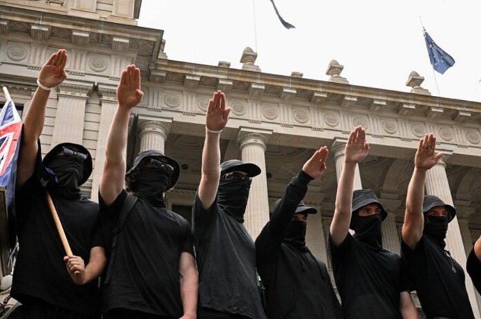 Θα εξετάσουμε το πώς μπορεί να γίνει με προσοχή, θα διαβουλευτούμε με διάφορες οργανώσεις και θα έχουμε περισσότερα να πούμε για τις λεπτομέρειες» κατά τη διάρκεια των συζητήσεων για το μέτρο, ανέφερε η κυρία Σάιμς σε ανακοίνωσή της που αναμετέδωσε το πρακτορείο ειδήσεων AAP.Περίπου 30 νεοναζί έκαναν πορεία στη Μελβούρνη υψώνοντας επανειλημμένα τα χέρια στον ναζιστικό χαιρετισμό μπροστά στο κοινοβούλιο της Βικτόριας προχθές Σάββατο. Έγιναν τρεις συλλήψεις κατά τη διαδήλωση, ανακοίνωσε η αστυνομία της πολιτείας.«Εύχομαι να μη χρειαζόταν να ειπωθεί, αλλά είναι σαφές πως χρειάζεται: οι ναζί δεν είναι ευπρόσδεκτοι εδώ πέρα. Ούτε στα σκαλιά του κοινοβουλίου, ούτε πουθενά», τόνισε χθες Κυριακή μέσω Twitter ο πολιτειακός πρωθυπουργός Ντάνιελ Άντριους.