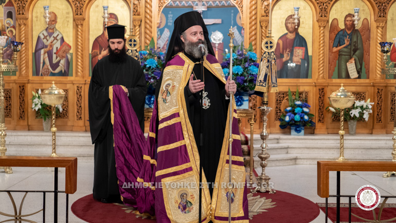 Κλείνοντας ευχαρίστησε για την πρόσκληση τον Ιερατικώς Προϊστάμενο της Ενορίας του Αγίου Νικολάου, Πανοσιολογιώτατο Αρχιμανδρίτη π. Χριστόδουλο Οικονόμου, ενώ μετά το τέλος της Ακολουθίας μοίρασε από μία εικόνα σε όλους τους πιστούς, ευχόμενος η Παναγία να τους ευλογεί και να τους προστατεύει.