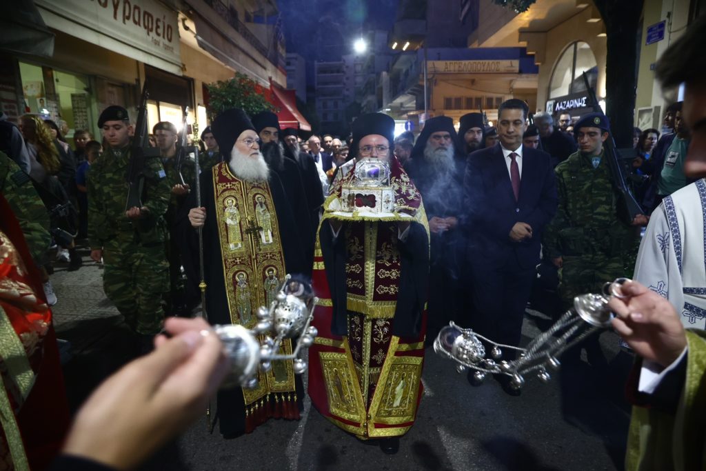 Σε πανηγυρικό κλίμα το Αγρίνιο υποδέχθηκε την Τιμία Κάρα του Αγίου Ιωάννου του Χρυσοστόμου από την Ιερά Μεγίστη Μονή Βατοπαιδίου το απόγευμα της Πέμπτης 16 Νοεμβρίου 2023.