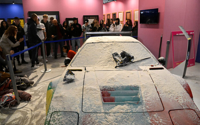 Το BMW Art Car έμοιαζε σαν να έχει καλυφθεί από ένα λεπτό στρώμα χιονιού μετά τη σημερινή επίθεση.