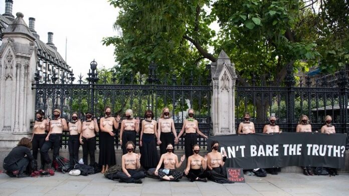 Ακτιβίστριες της περιβαλλοντικής οργάνωσης Extinction Rebellion αλυσοδέθηκαν, γυμνόστηθες, έξω από το βρετανικό Κοινοβούλιο, με σκοπό να τονίσουν τη «γυμνή αλήθεια» για την κλιματική αλλαγή, κατά την τελευταία ημέρα μιας σειράς δράσεων που ανέλαβαν και οι οποίες προκάλεσαν την οργή της συντηρητικής βρετανικής κυβέρνησης.