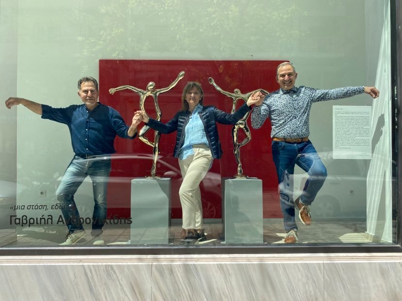 Πρόκειται για δύο μπρούτζινες μορφές, έργα του γλύπτη Γαβριήλ Ανδρονικίδη, που κοσμούν εδώ και λίγες μέρες τις Βιτρίνες Τέχνης του ΟΤΕ.