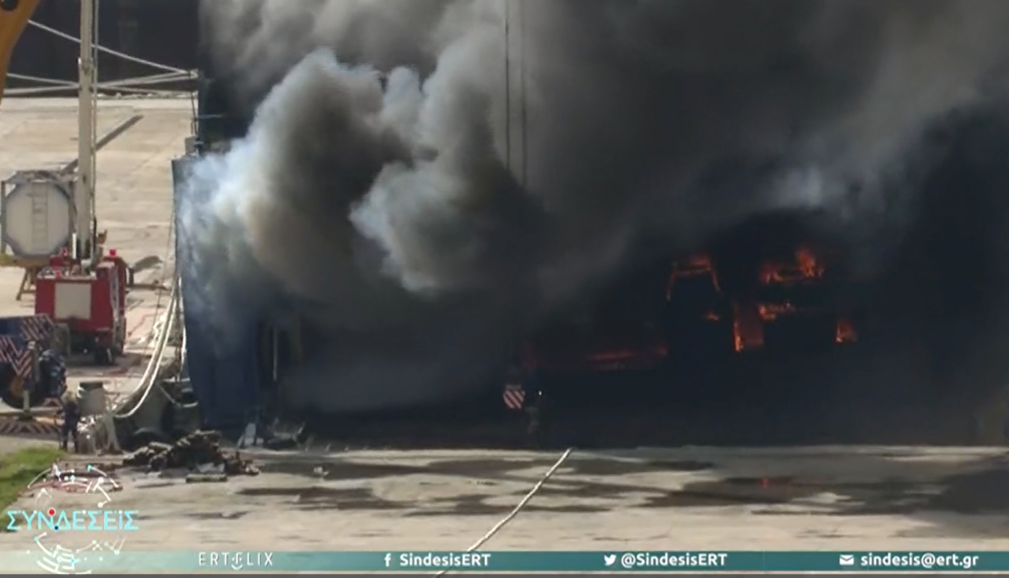 Aναζωπυρώθηκε η φωτιά στο Euroferry Olympia