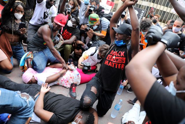 Οι διαδηλωτές γονάτισαν και τήρησαν ενός λεπτού σιγή σε ένδειξη διαμαρτυρίας για την αστυνομική βία απέναντι στους μαύρους.