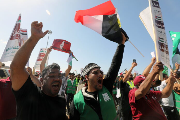 Στο Κάιρο, δεκάδες χιλιάδες διαδηλωτές, μερικές χιλιάδες από τους οποίους στην εμβληματική πλατεία Ταχρίρ, φώναξαν “Ψωμί, ελευθερία, αραβική Παλαιστίνη” και “Ο λαός θέλει την πτώση του Ισραήλ”, παραφράζοντας τα δύο κυριότερα συνθήματα της “επανάστασης” του 2011 που ανέτρεψε τον πρόεδρο Χόσνι Μουμπάρακ.