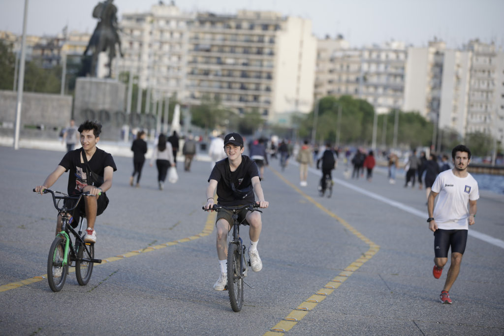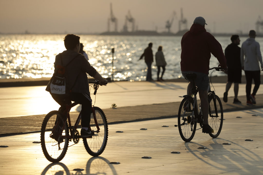 Οι πολίτες απόλαυσαν την βόλτα τους στη Νέα Παραλία της Θεσσαλονίκης, το απόγευμα της Δευτέρας.