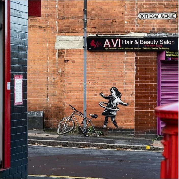 Η πανδημία φαίνεται πως εμπνέει τον Μπάνκσι. Τον Οκτώβριο, σχεδίασε ένα κορίτσι που έκανε χούλα χουπ με μια ρόδα αυτοκινήτου.