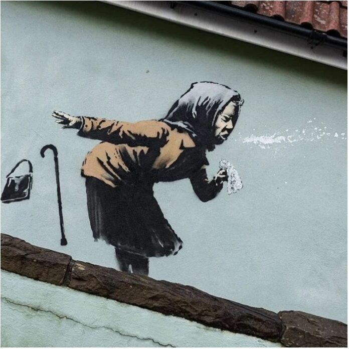 Στον τοίχο ενός παλιού σπιτιού στο Μπρίστολ, εμφανίστηκε από τη μία μέρα στην άλλη ένα ασυνήθιστο σχέδιο. Απεικονίζει μία ηλικιωμένη που φτερνίζεται και, από το στόμα της, φεύγουν τα ψεύτικα δόντια της!