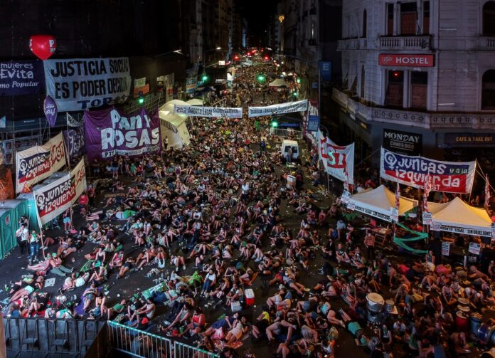 Όμως το θέμα διχάζει και την κοινωνία της Αργεντινής: Μπροστά από το κοινοβούλιο είχαν συγκεντρωθεί χθες Πέμπτη διαδηλώτριες υπέρ των αμβλώσεων φορώντας ένα πράσινο μαντίλι, σύμβολο του αγώνα τους, και κρατώντας πανό στα οποία έγραφαν: “Η νόμιμη άμβλωση τώρα, δωρεάν και στα νοσοκομεία!”.