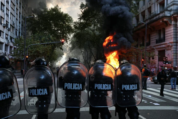Βίαιες συγκρούσεις μεταξύ διαδηλωτών και αστυνομίας ξέσπασαν σήμερα στο Μπουένος Άιρες, κατά τη διάρκεια διαδήλωσης για τις συντάξεις.