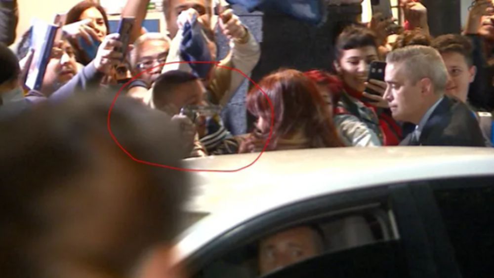 Αρκετά τηλεοπτικά δίκτυα μετέδωσαν την εικόνα του προσώπου που σημάδευσε στο κεφάλι την πρώην πρόεδρο και η νυν αντιπρόεδρο Κίρσνερ καθώς έβγαινε από το αυτοκίνητο που τη μετέφερε στην κατοικία της και συναντάται με υποστηρικτές της που την περιμένουν προτού μπει. Ο άνδρας τραβά τη σκανδάλη, αλλά το πιστόλι δεν εκπυρσοκροτεί.