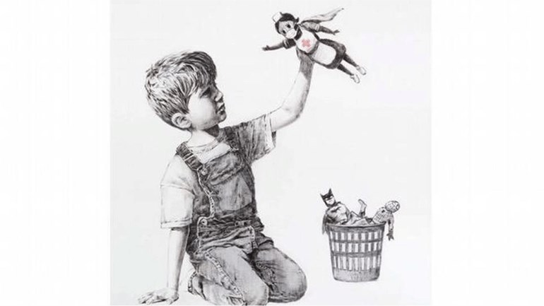 Ένας πίνακας του Βρετανού καλλιτέχνη του δρόμου Μπάνκσι που αποτίνει φόρο τιμής στους νοσηλευτές πωλήθηκε σε δημοπρασία στο Λονδίνο αντί 16,75 εκατομμυρίων στερλινών (19,45 εκατομμύρια ευρώ), ποσό ρεκόρ για πώληση σε δημοπρασία και για έργο του καλλιτέχνη, το οποίο θα δοθεί στο εθνικό σύστημα υγείας.