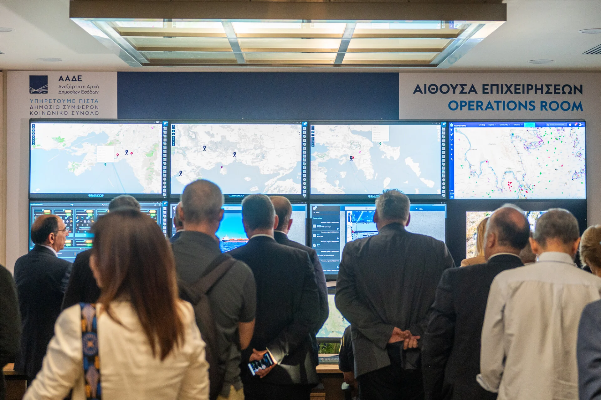 Στις εγκαταστάσεις της Γενικής Διεύθυνσης τέθηκε σε λειτουργία πριν από λίγο διάστημα η αίθουσα Επιχειρήσεων της ΑΑΔΕ, η οποία παρέχει τη δυνατότητα συντονισμού και παρακολούθησης, σε πραγματικό χρόνο, των ελέγχων που διενεργούνται από υπαλλήλους της ΑΑΔΕ σε καταστήματα, τελωνεία, πλοία, χώρους ιδιαίτερου ενδιαφέροντος κ.λπ.