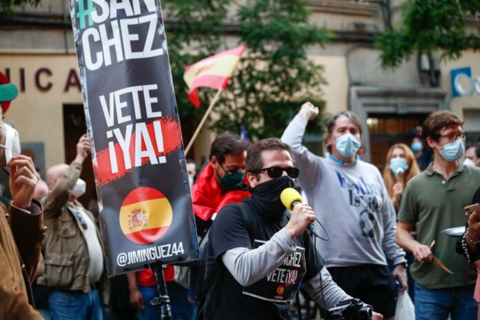 «Δεν είναι καραντίνα, είναι διάκριση», φώναζαν οι διαδηλωτές μπροστά από το κοινοβούλιο της περιφέρειας της Μαδρίτης.