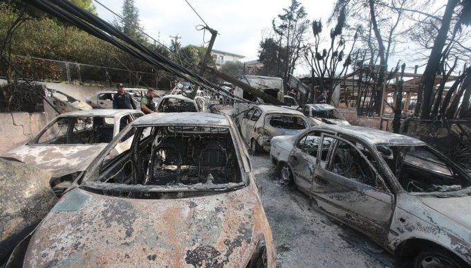 Η μάρτυρας, που μαζί με τον γιο της σώθηκαν από θαύμα, αναφέρθηκε σε όσα βίωσαν. «Δεν ήταν η πρώτη φορά που έγιναν γεγονότα στην περιοχή. Ήταν η πρώτη φορά που δεν ήρθε κανένας. Κάποια στιγμή, κατά τις έξι παρά, κατέβηκα κάτω. Έριξα μια ματιά από τα παράθυρα και έβλεπα μια μαυρίλα. Δεν υπήρχε σειρήνα, πυροσβεστικό, αστυνομία, τίποτα. Εμείς δεν ξέραμε τίποτα, ήταν ο πεθερός μου και εκείνος ανήσυχος. Καναμε βόλτα γύρω από το σπίτι. Μονο μαυρίλα. Καποια στιγμή στη βεράντα έβλεπα πράγματα να πετάνε. Κάηκε το χέρι μου που έπεσε ένα μεγάλο κομμάτι στάχτης. Το μόνο που άκουσα ήταν ο δήμαρχος Ραφήνας ότι η φωτιά πάει στον Διόνυσο και οι κάτοικοι να μη βγουν… Τα τηλέφωνα είτε δεν απαντούν είτε βουϊζουν. Κατά τις έξι και πέντε ξύπνησε το παιδί και τότε κόπηκε το ρεύμα. Από ένστικτο ανέβηκα επάνω και πήρα ρούχα για το παιδί. Έριξα μια ματιά έξω και είδα το μαύρο σύννεφο είχε φτάσει σε εμάς. Είδα τεράστιες φλόγες δεξιά μου και φώναξα το παιδί μου. Καιγόμαστε. Κλάματα. Δεν μπορεί να γίνεται αυτό. Είναι ταινία. Είναι όνειρο. Είναι εφιάλτης. Ήταν ο δικός μου εφιάλτης. Φώναξα στο παιδί μου “Κωνσταντίνε φεύγουμε τώρα”. Κανένας δεν μας είπε να φύγουμε. Να μη ζήσει το παιδί μου αυτό που έζησε. Αρχίζει να ουρλιάζει “μαμά μου θα κάνουμε; Μαμά μου θα πεθάνουμε;” Και εγώ να του λέω “ντύσου, θα φύγουμε. Δεν έχουμε επιλογή”. Τις φλόγες τις βλέπαμε στα δέντρα γύρω μας. Έξι και τέταρτο. Το ρολόι που φορούσα είχε μέταλλο και μου έκαψε το δέρμα. Με πάγωσε περισσότερο η θέα από τις φλόγες που έρχονταν πάνω μου», σημείωσε.