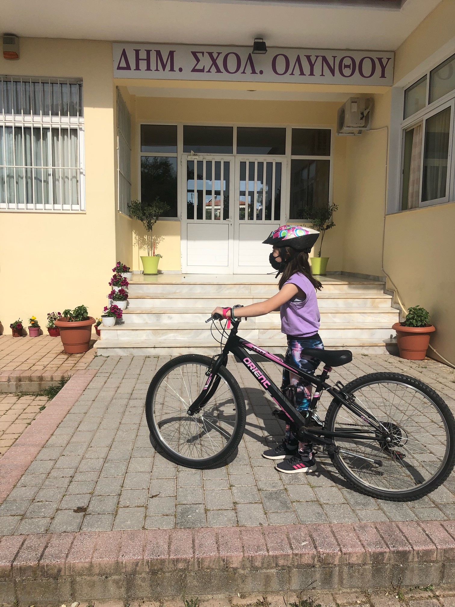 Λίγο πριν χτυπήσει το πρωινό κουδούνι στο δημοτικό σχολείο Ολύνθου στη Χαλκιδική, η εικόνα θυμίζει ποδηλατικό γύρο. Μικροί και μεγαλύτεροι μαθητές προσέρχονται στο σχολείο με τα ποδήλατά τους, τα παρκάρουν στις ειδικές θέσεις που έχουν φτιιαχτεί και μπαίνουν στις τάξεις.