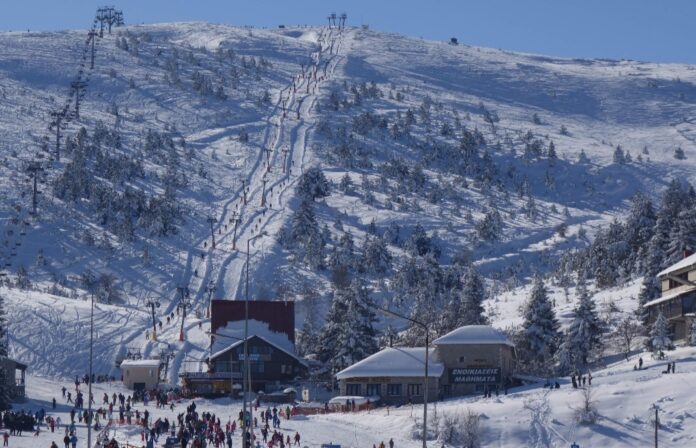 Στο εθνικό χιονοδρομικό κέντρο Σελίου, στο Βέρμιο, οι νιφάδες του χιονιού πέφτουν με αμείωτη ένταση και όλες οι πίστες είναι έτοιμες για τους σκιέρ.