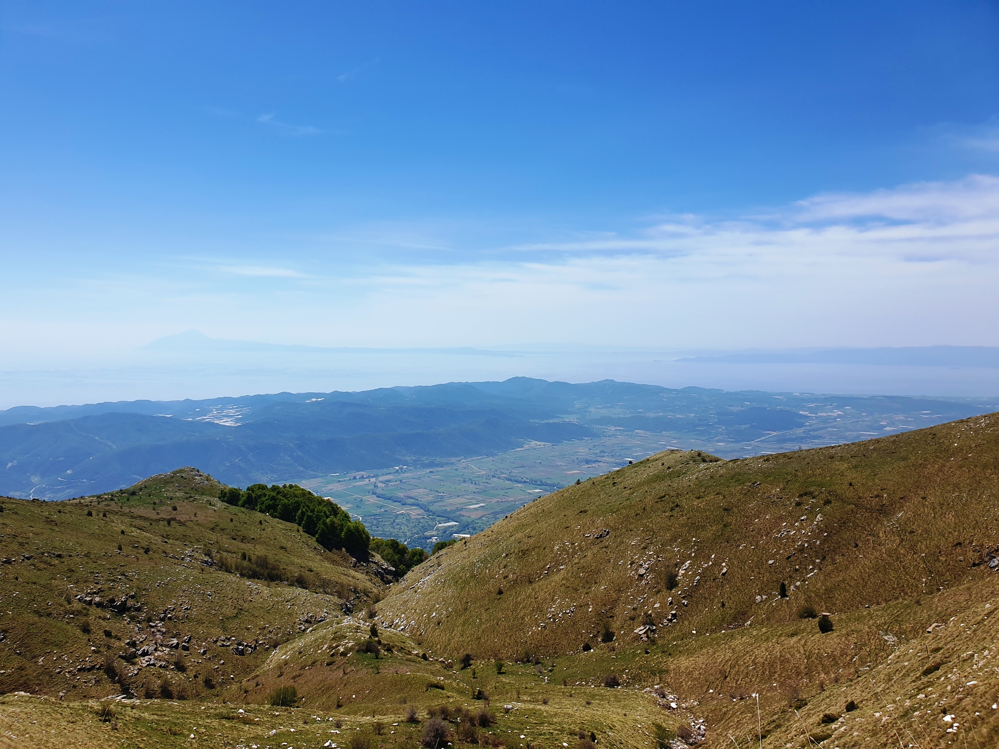 Ο κάμπος των Φιλίππων απλώνεται κάτω από το βουνό. Η ηλιοφάνεια και η καθαρή ατμόσφαιρα προσφέρουν μοναδικής ομορφιάς εικόνες στην απεραντοσύνη του ορίζοντα.