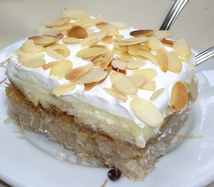 Χτυπάμε την φυτική κρέμα με 3 – 4 κουταλιές ζάχαρη άχνη μέχρι να σταθεί. Την στρώνουμε πάνω στην άλλη κρέμα.