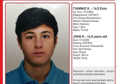 Σύμφωνα με την ενημέρωση που παρείχε το «Χαμόγελο του Παιδιού», πρόκειται για τον Γιάννη Κ., που έχει ύψος 1,80 μ., 74 κιλά βάρος, σκούρα καστανά μαλλιά και καστανά μάτια. Επιπλέον, φορούσε μαύρο σορτσάκι, μαύρη κοντομάνικη μπλούζα και μαύρες σαγιονάρες.