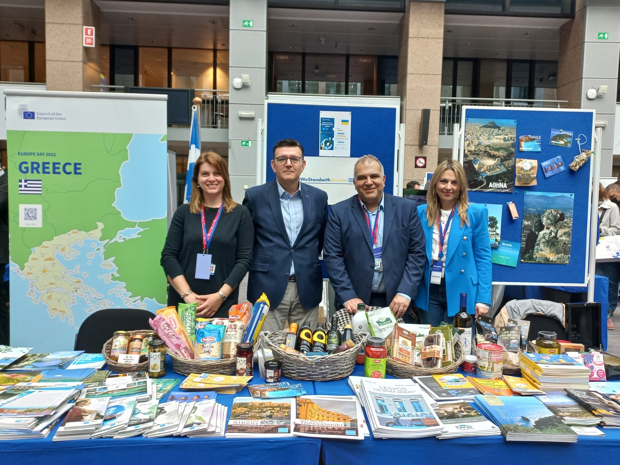 Στο ελληνικό περίπτερο, ο σύμβουλος Εμπορικών-Οικονομικών Υποθέσεων της πρεσβείας της Ελλάδας στο Βέλγιο, Τάσος Παπαθωμάς, ο σύμβουλος Επικοινωνίας της πρεσβείας, Θωμάς Θωμόπουλος και τα στελέχη της Μόνιμης Ελληνικής Αντιπροσωπείας της ΕΕ, Χρυσούλα Λιάτσου και Σταυρούλα Παπαευαγγέλου, είναι μεταξύ αυτών που βρίσκονται εκεί και προσκαλούν τους επισκέπτες να έρθουν πιο κοντά με την ελληνική γαστρονομία, αλλά και να διερευνήσουν τις επιλογές που έχουν για διακοπές στην Ελλάδα.