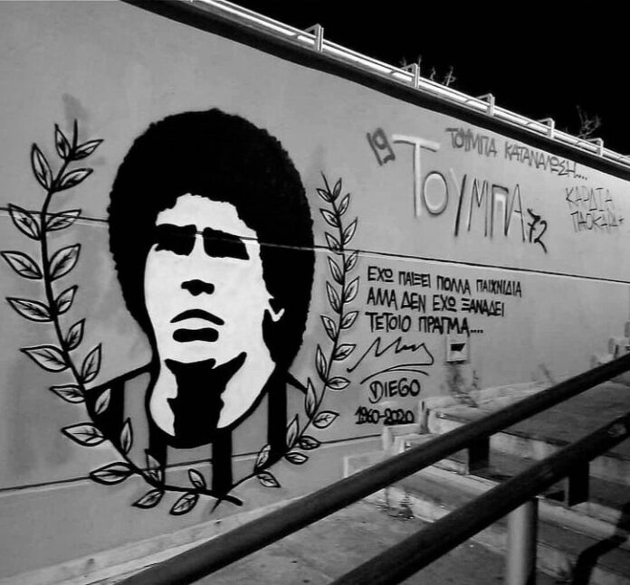 Ένας φόρος τιμής στον τεράστιο Ντιέγκο Αρμάντο Μαραντόνα, το γκράφιτι με το πρόσωπο του Αργεντίνου στην Τούμπα.