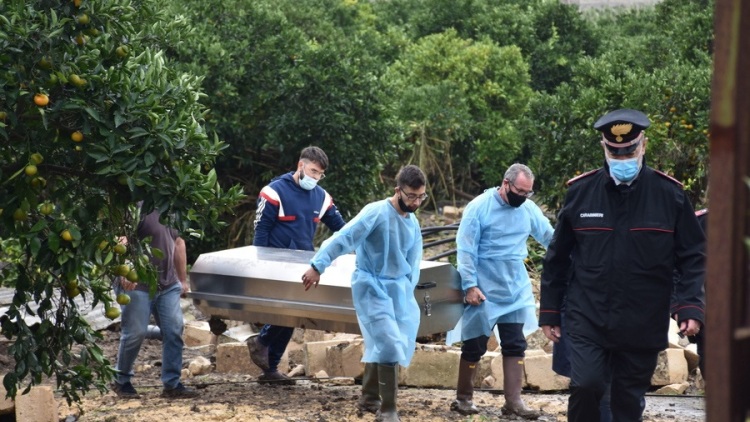 Ένας 67χρονος άνδρας βρέθηκε νεκρός σε έναν οπωρώνα, σε μεγάλη απόσταση από το σημείο όπου εθέαθη για τελευταία φορά, όταν το αυτοκίνητό του παρασύρθηκε από τα νερά και τη λάσπη, στα νοτιοδυτικά της Κατάνης. Η σύζυγός του αγνοείται ακόμη.