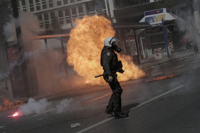 Σε ότι αφορά στα επεισόδια που σημειώθηκαν, σύμφωνα με την ΕΛΑΣ, μια ομάδα πάνω από 200 άτομα που βρίσκονταν μέσα και στην περίμετρο της συγκέντρωσης και στη συνέχεια της πορείας, εκτόξευσαν μάρμαρα, πέτρες και βόμβες μολότοφ εναντίον των αστυνομικών δυνάμεων.