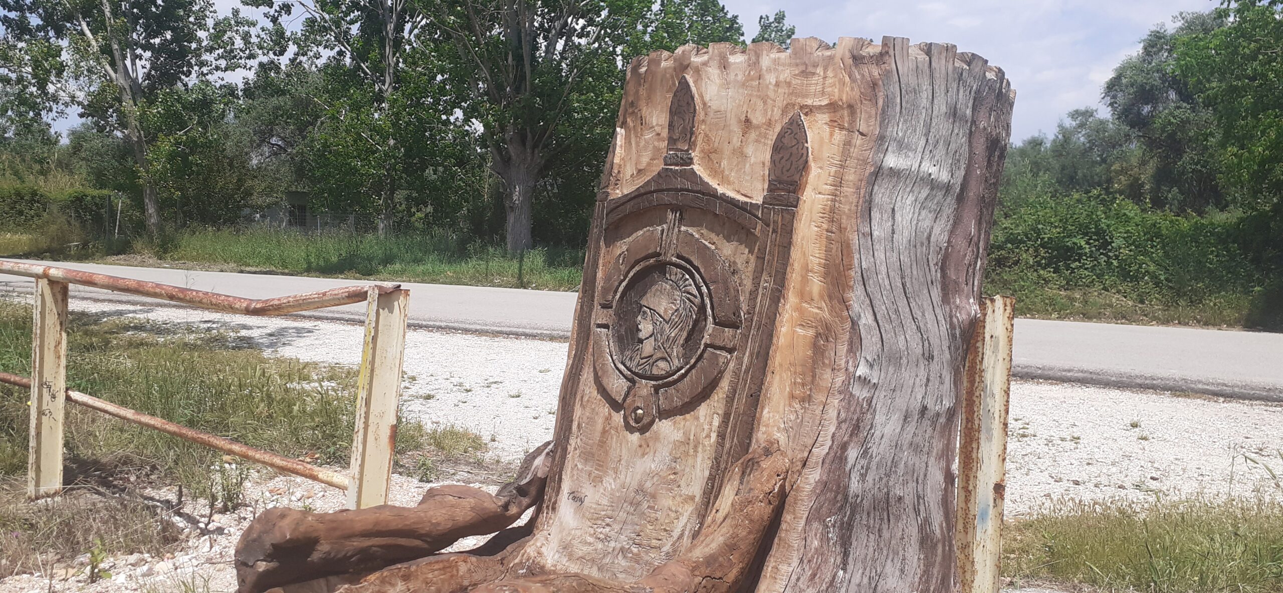 Έργα σμιλεμένα πάνω σε κορμούς από νεκρά πλατάνια, που οι ρίζες τους βρίσκονται ακόμη μέσα στο έδαφος και «διηγούνται ιστορίες», από τη μυθολογία και τη ζωή στη φύση.
