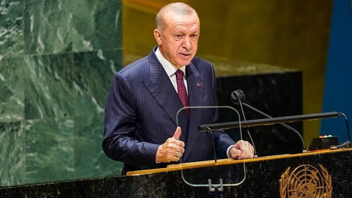 Ο Ρετζέπ Ταγίπ Ερντογάν αφού ανέβηκε στο βήμα υπενθύμισε ότι όλη η ανθρωπότητα πέρασε οδυνηρά τα τελευταία 2 χρόνια λόγω της πανδημίας του κορωνοϊού. «Πρώτα απ’ όλα, θα ήθελα να εκφράσω μια αλήθεια, αν και πικρή. Δεν ήταν μία καλή δοκιμή όσον αφορά την παγκόσμια αλληλεγγύη. Ειδικά οι υπανάπτυκτες χώρες και τα φτωχά κοινωνικά τμήματα αφέθηκαν σχεδόν στη μοίρα τους μπροστά στην επιδημία», είπε.