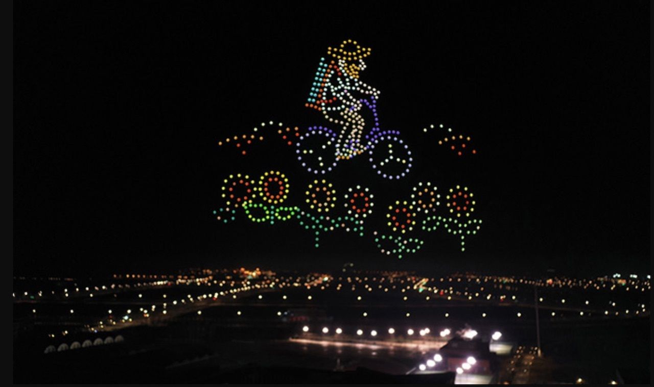 ( https://www.youtube.com/watch?v=zxgxUmrotLc ). Χρησιμοποιήθηκε το μοντέλο drone Agile Bee II, το βάρος του οποίου είναι περίπου 1,4 κιλά, κινείται με ταχύτητα περίπου 32 χιλιομέτρων την ώρα και μπορεί να παραμείνει εν πτήσει για έως 32 λεπτά. Για να χαρακτηριστεί animation το show έπρεπε τα drones να δίνουν 12 εικόνες ανά δευτερόλεπτο. H κριτής του Guinness World Records, Maggie Luo εκτίμησε ότι το show πληροί τις προδιαγραφές και κατέρριψε το προηγούμενο ρεκόρ.