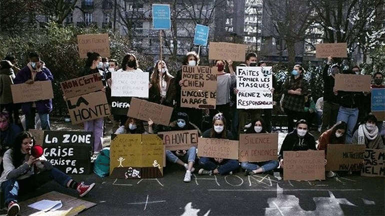 Το κάλεσμα για την καθιστική διαμαρτυρία έγινε σε στήριξη της οργάνωσης «Les Callisto», που μάχεται κατά της βίας στις σχολές ζωντανού θεάματος, η οποία ιδρύθηκε το 2020 και τον Νοέμβριο δημοσίευσε ένα άρθρο υπό τον τίτλο «Cours Florent, μάθημα βίας;». Εκεί, κατηγορούσε τη σχολή ότι είναι «συνεργός» σε συστηματικές επιθέσεις, διακρίσεις και εξευτελισμούς σε βάρος των σπουδαστών. Η σχολή αντέδρασε προσφεύγοντας στη δικαιοσύνη, όπου κατήγγειλε την οργάνωση για συκοφαντική δυσφήμιση.
