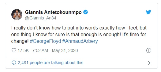 Το μήνυμα του Έλληνα MVP του NBA για τη δολοφονία του Τζορτζ Φλόιντ