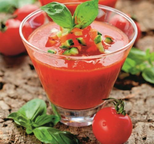 1. Ξεφλουδίζετε τις ντομάτες και καθαρίζετε το κρεμμύδι, το αγγούρι, τις πιπεριές και τα σκόρδα και τα κόβετε σε μικρά κομμάτια.