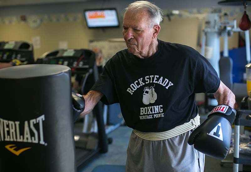 Ο Scott C. Newman, πρώην εισαγγελέας, το 2006 παρατήρησε ότι η ενασχόληση με την πυγμαχία βοηθάει στη καταπολέμηση της νόσου. Οι προπονήσεις γίνονται όπως ενός αθλητή πυγμαχίας, με την μόνη διαφορά πως δεν υπάρχει η σωματική επαφή μεταξύ των συμμετεχόντων, απλά ρίχνουν γροθιές σε σάκους του μποξ και σε ανθρώπινα ομοιώματα από καουτσούκ.