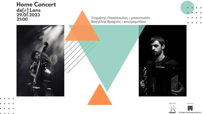 Το πρώτο από τα προγραμματισμένα Home Concerts που διοργανώνει η ομάδα της olipoli, θα γίνει αυτήν την Κυριακή, 29 Ιανουαρίου, στο σαλόνι ενός σπιτιού, στην ευρύτερη περιοχή του κέντρου της Θεσσαλονίκης. Εκεί, θα παρουσιαστούν πρωτότυπες συνθέσεις των Σταμάτη Πασόπουλου (μπαντονεόν) και Βαγγέλη Βραχνού (κοντραμπάσο), σε αλληλεπίδραση μεταξύ τους και ενταγμένες στη ροή ενός αυτοσχεδιαστικού διαλόγου και κολλάζ.