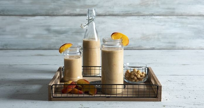 2 ροδάκινα, κομμένα σε κομμάτια + έξτρα φέτες, για το σερβίρισμα