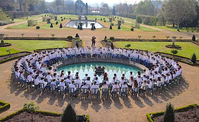 Χρησιμοποιώντας ένα περίτεχνο μίγμα από παλαμάκια, χτυπήματα στα πόδια, ποδοβολητά και χτυπήματα δαχτύλων, οι 185 μαθητές του σχολείου μεταμόρφωσαν την ορχηστρική σύνθεση σε ένα έπος της body percussion. Απόλυτα συγχρονισμένοι έδωσαν ένα εξαιρετικό ηχητικό-μουσικό αποτέλεσμα και τα πλάνα τα οποία τραβήχτηκαν με drone είναι υπέροχα ( https://www.youtube.com/watch?v=7wVfphy9pbw ). Φορώντας μάσκα για προστασία από τον ιό, οι μαθητές κινούνται, κλίνουν το σώμα τους και κουνούν τα χέρια τους με τρόπο που παραπέμπει σε σκηνογραφία μπαλέτου.