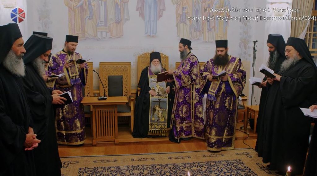 Η Ακολουθία του Ιερού Νιπτήρος τελέσθηκε την Μεγάλη Πέμπτη στο Συνοδικό της Ιεράς Μεγίστης Μονής Βατοπαιδίου υπό του Καθηγουμένου Γέροντος Εφραίμ Βατοπαιδινού.
