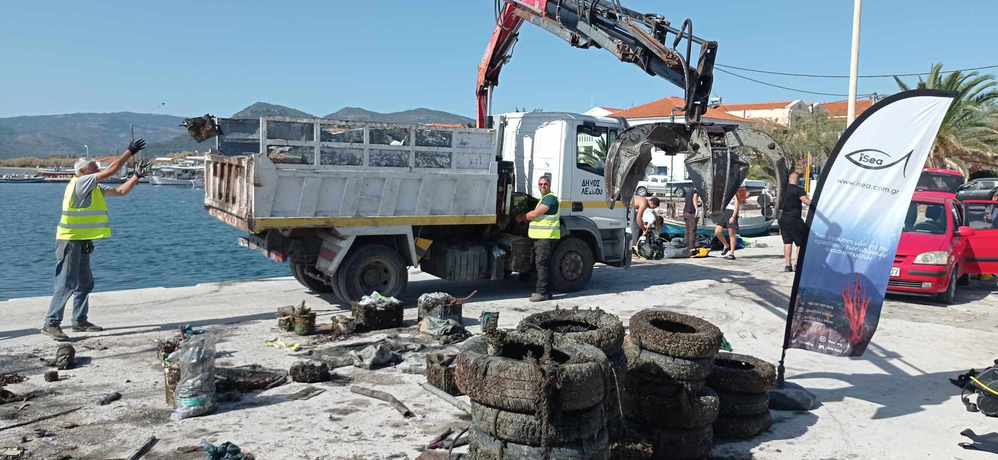 Η ευαισθητοποίηση του κοινού στα ζητήματα θαλάσσιας ρύπανσης ήταν ο απώτερος στόχος της δράσης που διοργάνωσε η περιβαλλοντική οργάνωση iSea, σε συνεργασία με το Πανεπιστήμιο Αιγαίου και υπό την αιγίδα του Δήμου Δυτικής Λέσβου. Επί τρεις ώρες, οκτώ δύτες συνολικά ανέσυραν απόβλητα κάθε είδους (λάστιχα, συσκευασίες πλαστικές και αλουμινίου, σχοινιά, υφάσματα, άγκυρες, δίχτυα κλπ), από τον βυθό του αλιευτικού καταφυγίου στη Σκάλα Καλλονής, τα οποία στη συνέχεια απομακρύνονταν από δημοτικούς υπαλλήλους και εθελοντές φοιτητές του Πανεπιστημίου Αιγαίου, με οχήματα του Δήμου Δυτικής Λέσβου. Παράλληλα, μέλος της οργάνωσης ενημέρωνε το κοινό αναφορικά με τους χιλιάδες τόνους αποβλήτων που καταλήγουν κάθε χρόνο στη θάλασσα της Μεσογείου, υποβαθμίζοντας σημαντικά τα θαλάσσια και παράκτια οικοσυστήματα και τραυματίζοντας ή ακόμα και θανατώνοντας τα θαλάσσια είδη.