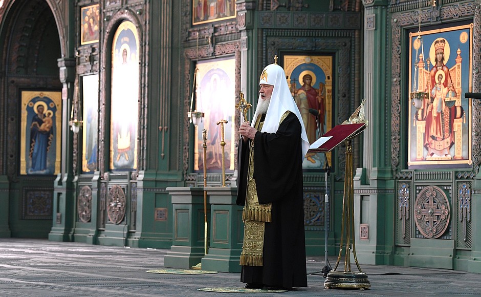 Στον Ιερό Καθεδρικό Ναό των Ενόπλων Δυνάμεων βρέθηκαν σήμερα ο Πατριάρχης Μόσχας και πασών των Ρωσιών κ.κ. Κύριλλος και ο Πρόεδρος της Ρωσικής Ομοσπονδίας Βλαντίμιρ Πούτιν συνοδευόμενος από τον Υπουργό Άμυνας της χώρας Σεργκέι Σόικου με αφορμή την 79η επέτειο από την έναρξη του Β’ Παγκοσμίου Πολέμου που αποτελεί ημέρα μνήμης και θλίψης για την Ρωσία.