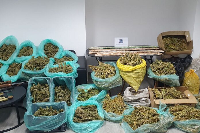 Επιπλέον βρέθηκαν και κατασχέθηκαν συνολικά 57.260 γραμμάρια ακατέργαστης κάνναβης, πιστόλι με γεμιστήρα, περίστροφο, κυνηγετικό όπλο, 265 φυσίγγια διαφόρων τύπων και διαμετρημάτων, το χρηματικό ποσό των 27.800 ευρώ ως προερχόμενο από παράνομες δραστηριότητες και πτυσσόμενη ράβδος.Επιπλέον κατασχέθηκε ένα όχημα, ως μέσο μεταφοράς και διακίνησης ναρκωτικών ουσιών. Η προανάκριση διενεργείται από το Αστυνομικό Τμήμα Φαιστού..
