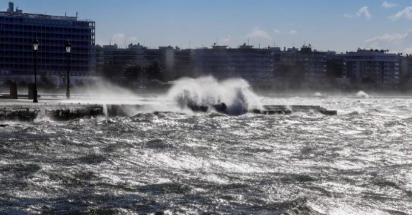 Ισχυροί άνεμοι «έβγαλαν» τα νερά του Θερμαϊκού στη Λ. Νίκης
