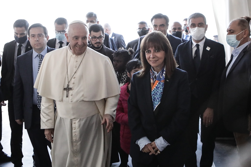 «Προστάτη των φτωχών και των κατατρεγμένων, συμμέτοχο στον πόνο τους, σθεναρό υπέρμαχο των δικαιωμάτων τους» χαρακτήρισε σήμερα τον Πάπα Φραγκίσκο η Πρόεδρος της Δημοκρατίας Κατερίνα Σακελλαροπούλου υποδεχόμενη τον στον καταυλισμό του προσωρινού Κέντρου υποδοχής και Ταυτοποίησης στον Καρά Τεπέ της Μυτιλήνης.