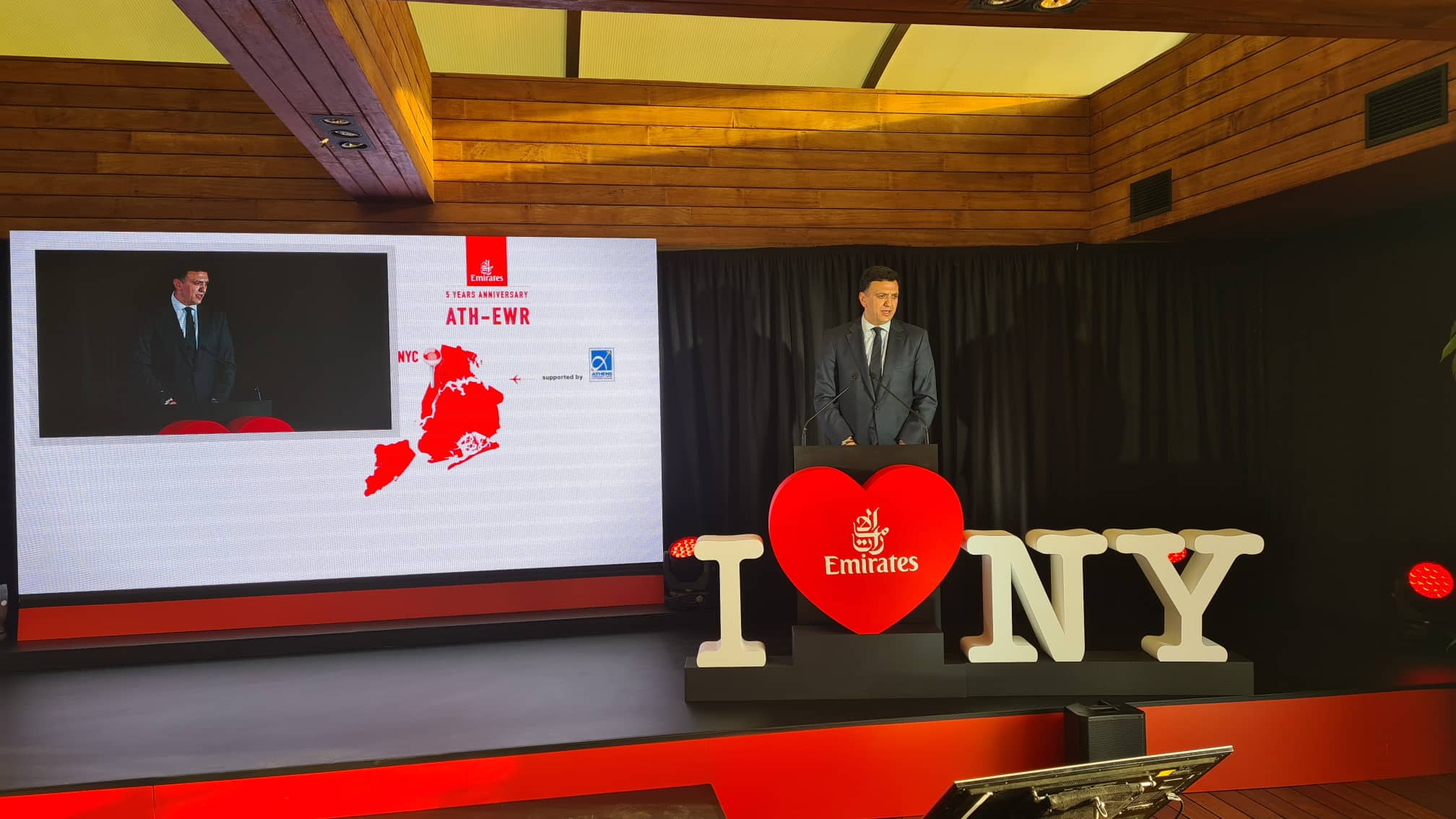 Την εκδήλωση χαιρέτισε και ο CEO του Ελευθέριος Βενιζέλος Γιάννης Παράσχης τονίζοντας πόσο σημαντικό είναι ότι η συγκεκριμένη πτήση κατάφερε να διατηρηθεί όλα αυτά τα χρόνια παρά τις όποιες δυσκολίες καθώς είναι η μόνη πτήση που συνδέει την Αθήνα με την Νέα Υόρκη σε ετήσια βάση.