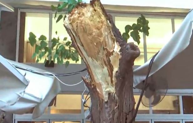Το δέντρο, σύμφωνα σύμφωνα με τον ΣΚΑΪ, έπεσε γύρω στις 9 το βράδυ σε εστιατόριο πίσω από τη Μητρόπολη Αθηνών χωρίς ευτυχώς να προκαλέσει, από τύχη, κάποιο τραυματισμό.