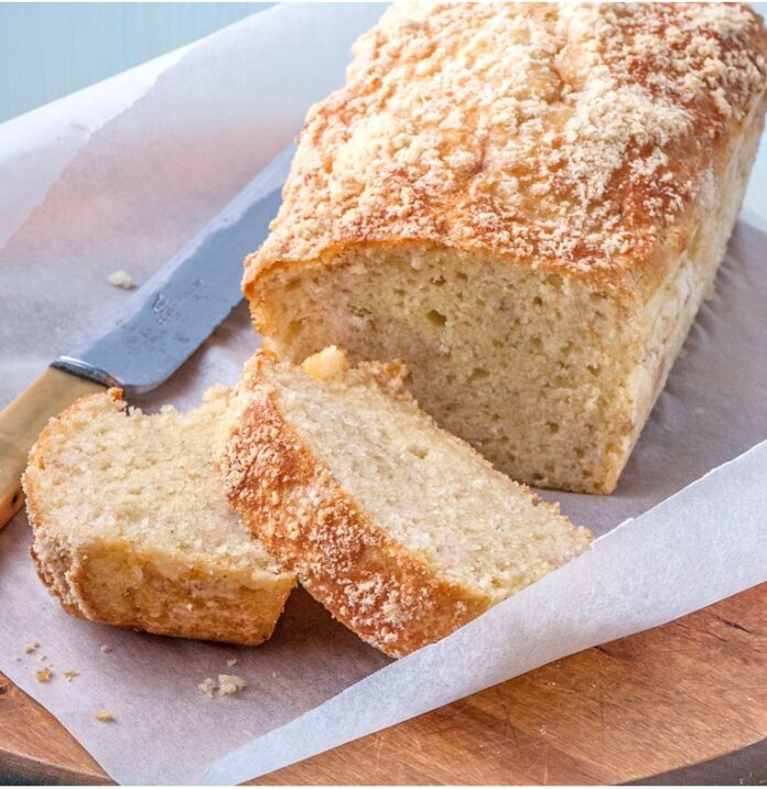 Αλείφουμε με βούτυρο και πασπαλίζουμε με αλεύρι μία μακρόστενη φόρμα για κέικ διαστάσεων 10×35 εκ.
