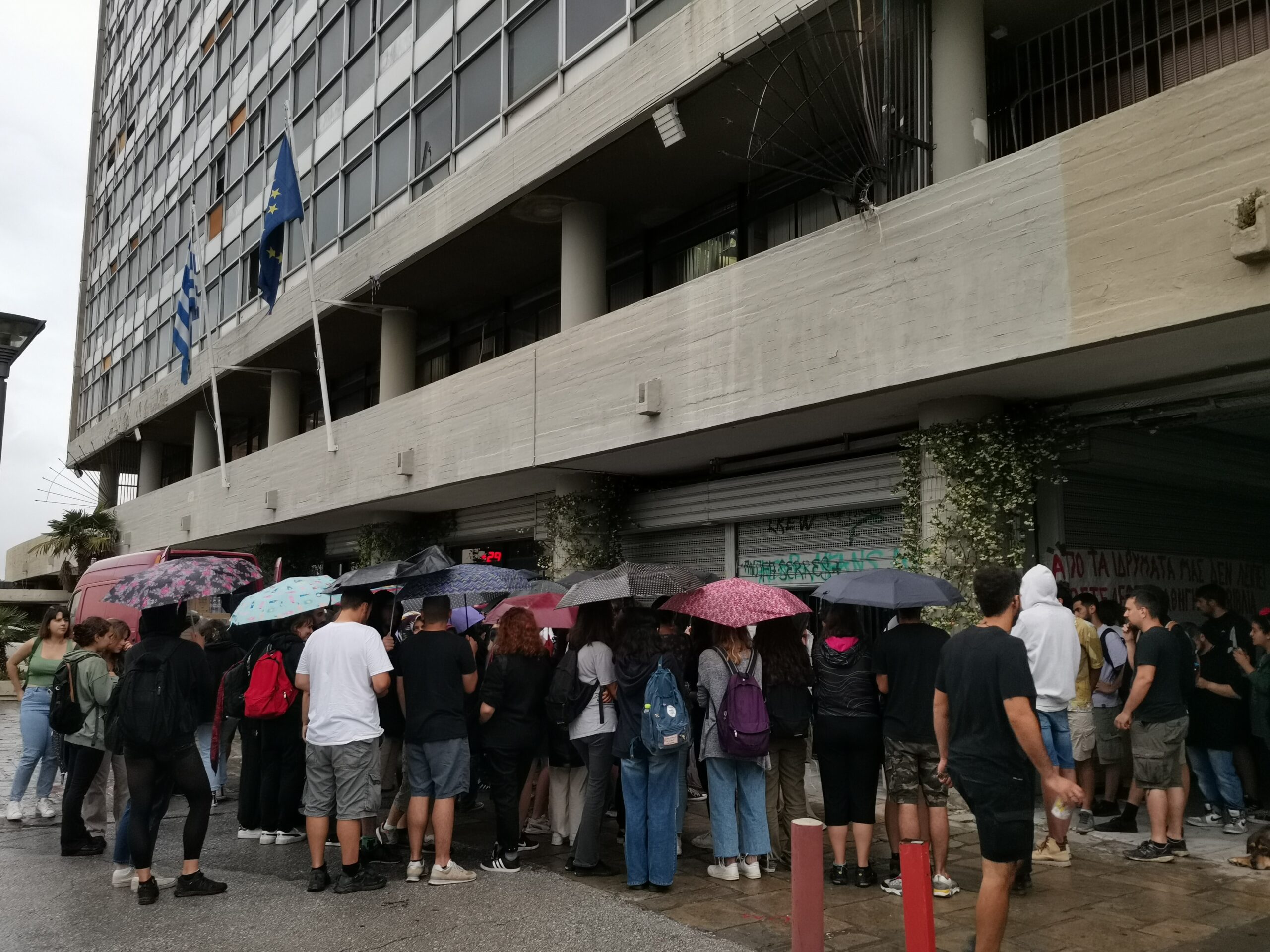 Συγκέντρωση διαμαρτυρίας μπροστά από την είσοδο του κτιρίου διοίκησης του Αριστοτελείου Πανεπιστημίου Θεσσαλονίκης (ΑΠΘ) πραγματοποίησαν μέλη φοιτητικών παρατάξεων που αντιδρούν στην εφαρμογή του νόμου 4777/21 και ιδιαίτερα των διατάξεών του που αφορούν την εγκατάσταση στα ΑΕΙ των Ομάδων Προστασίας Πανεπιστημιακών Ιδρυμάτων (ΟΠΠΙ).